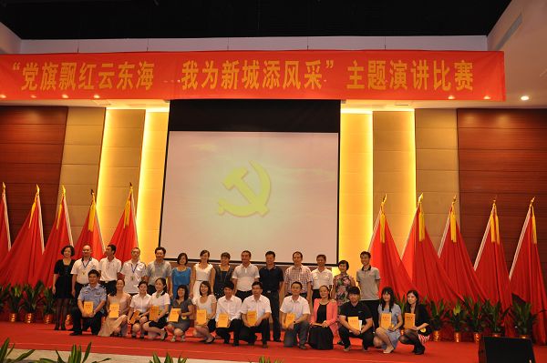 为隆重纪念中国共产党成立91周年,继承和发扬党的优良传统,缅怀党的丰功伟绩,并结合贯彻省第十一次党代会精神,弘扬厚于德、诚于信、敏于行的“广东精神”,展现三水新城各办(局)、街道各级党组织和广大党员干部在坚持科学发展、积极推进三水新城建设过程中的新风貌,激励各级党组织和广大党员干部振奋精神,以饱满的热情、务实的态度投身于三水新城建设的实践中,三水新城管委会、云东海街道于2012年7月3日举办了纪念建党91周年“党旗飘红云东海 我为新城添风采”主题演讲比赛。比赛在街道办公大楼一楼大会议室举行,管委会各办(局)、街道机关各党支部、森林公园党支部及云东海派出所党支部共13名选手参加了比赛。