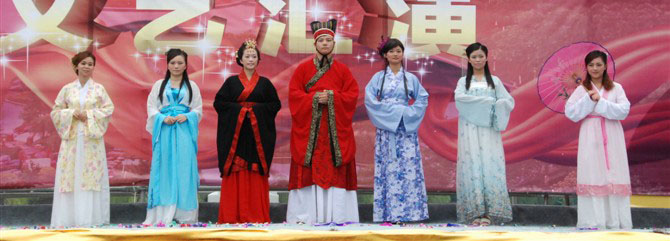 孔圣园内的儒文化展馆有汉服租售。汉服款式多样,有婚服、深衣、曲裾、小童汉服等。游客可以到此租上一套传统的民族汉服,在景区里拍照留念,感受一番穿越的乐趣。