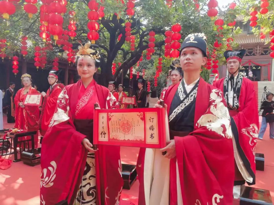 以三水孔圣园优美的人文景观为场地,结合儒家文化思想精髓与内涵,三水孔圣园举办“执子之手 与子偕老”大型汉式集体婚礼。通过再现汉式隆重典雅的婚礼现场,给现代新人打造一场别开生面的独特婚礼,留下难忘的幸福记忆。